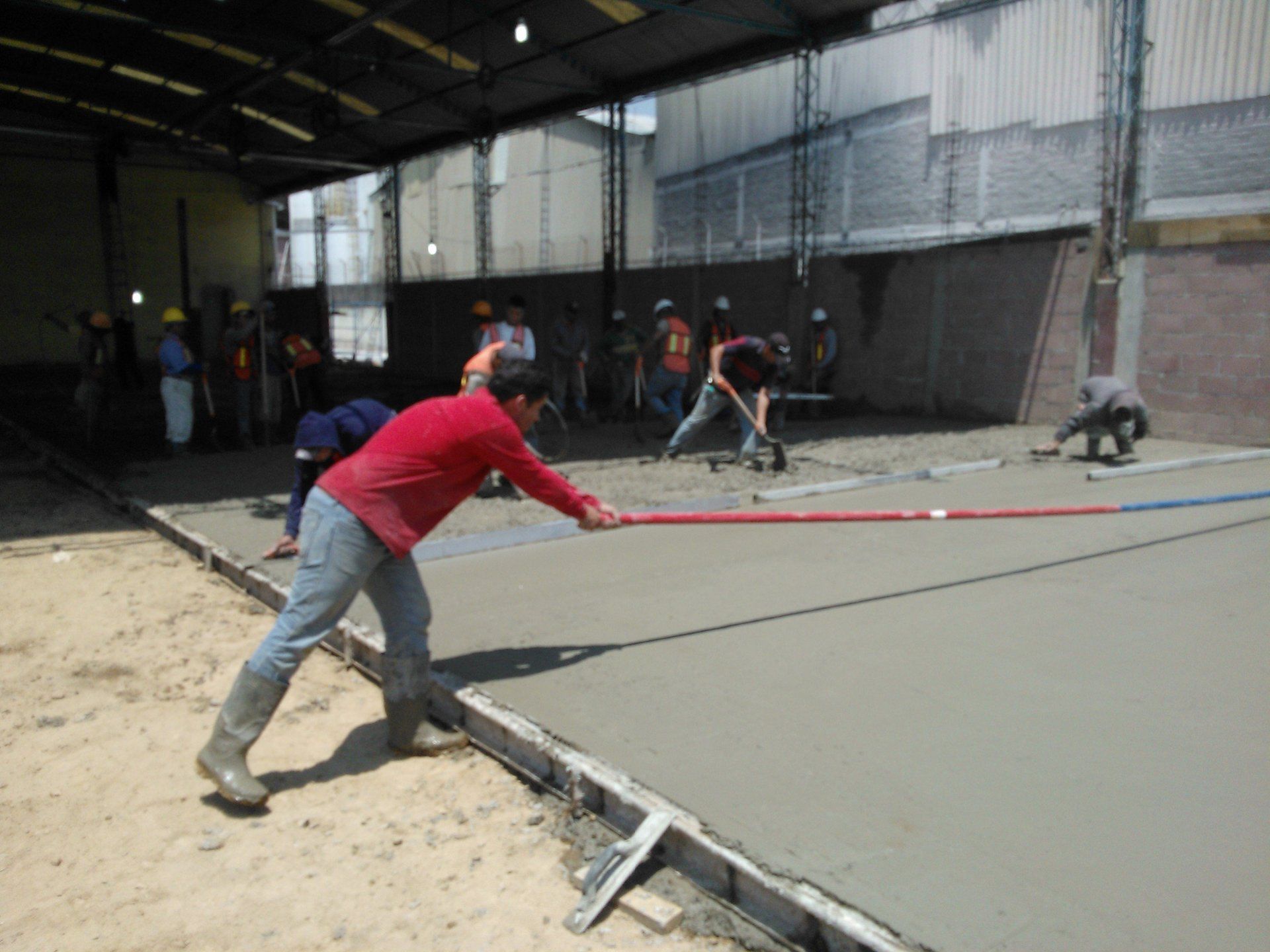 El proceso de un piso estampado empieza con la recepción del concreto extendiéndolo y nivelando con nivel lasér, después con forme el concreto fragua se agrega el color al concreto, después de la integración se estampa el diseño escogido con un molde, una ves seco se corta el concreto y posteriormente se lava para proceder a la ultima etapa del proceso, el sellado.